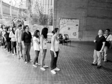 Below, I have included images from workshops in Caracas in April 2O11. We met twice a week for a month. I worked towards a number of projects that involved the performers walking while singing. There was for a piece called Hola, a pop up piece which was performed three times in the main shopping area called Sabana Grande.